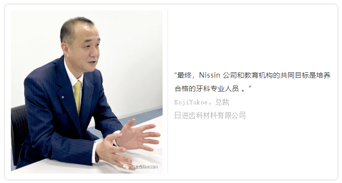 “最終,Nissin 公司和教育機(jī)構(gòu)的共同目標(biāo)是培養(yǎng)合格的牙科專業(yè)人員, ” Yokoe先生總結(jié)道?!拔蚁嘈牛M(jìn)一步加強(qiáng)我們與牙科學(xué)校及其教育工作者的關(guān)系,關(guān)注他們的具體需要,并通過我們的產(chǎn)品和服務(wù)提供量身定制的解決方案,將有助于提升牙科學(xué)生的技能。”
