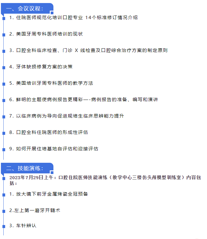 此次培訓班在空軍軍醫(yī)大學學術報告廳舉行。參加會議代表:全國口腔醫(yī)學專業(yè)住院醫(yī)師規(guī)范化培訓基地(科室)主任、教學副主任、教學秘書、指導教師或基地所在醫(yī)院的院級領導和相關職能部門負責。