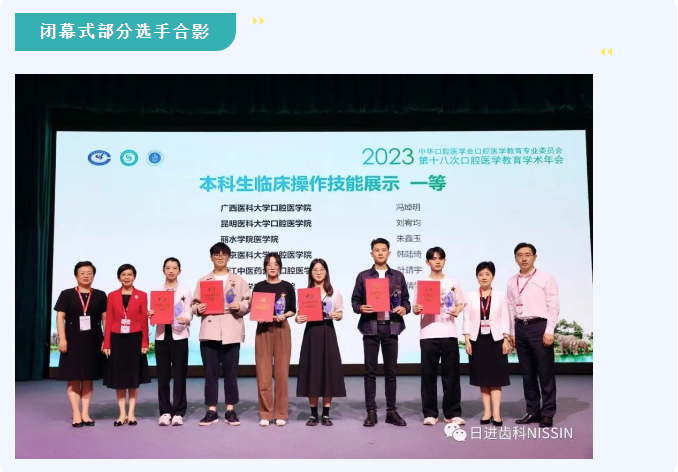 由中華口腔醫(yī)學(xué)會(huì)口腔醫(yī)學(xué)教育專業(yè)委員會(huì)主辦、昆明醫(yī)科大學(xué)口腔醫(yī)學(xué)院、南京醫(yī)科大學(xué)口腔醫(yī)學(xué)院承辦的2023年中華口腔醫(yī)學(xué)會(huì)口腔醫(yī)學(xué)教育專業(yè)委員會(huì)第十八次學(xué)術(shù)年會(huì)于2023年7月27日-29日在美麗的春城昆明隆重召開。日進(jìn)齒科材料(昆山)有限公司全程為口腔醫(yī)學(xué)院校本科生臨床操作技能展示提供各項(xiàng)配套服務(wù)以及完善的技術(shù)保障。