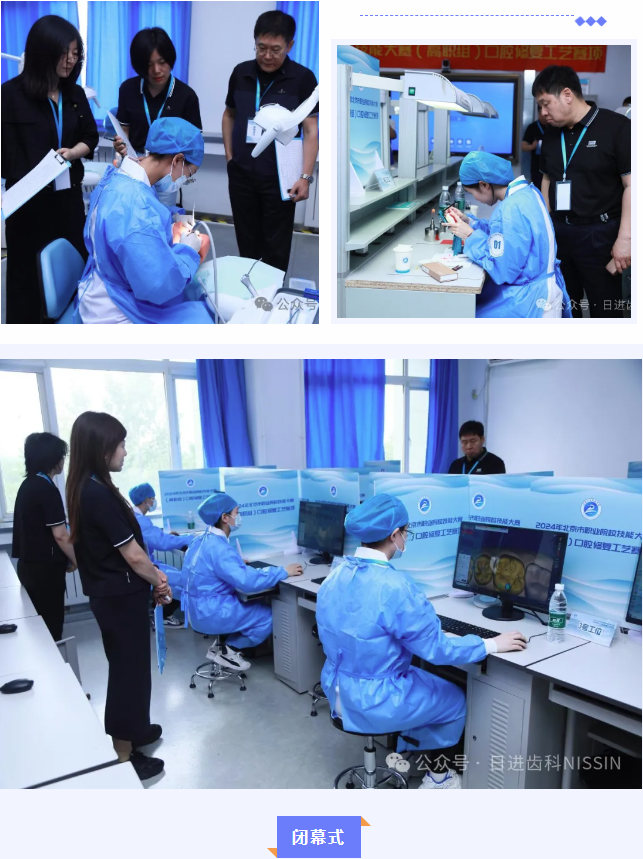 本次大賽共分為全口義齒排列、牙體預(yù)備、口腔數(shù)字化修復(fù)三個(gè)模塊,日進(jìn)齒科材料(昆山)有限公司提供了全程配套技術(shù)支持和服務(wù),本次大賽使用了主觀(專(zhuān)家評(píng)定)和客觀(由NISSIN提供的口腔數(shù)字化教學(xué)實(shí)習(xí)評(píng)價(jià)系統(tǒng)(Fair Grader 2000))兩種評(píng)分方式結(jié)合,比賽結(jié)果公平、公正、客觀,保障比賽高標(biāo)準(zhǔn)順利進(jìn)行。