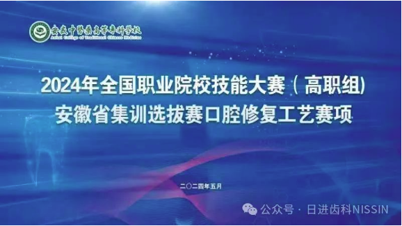 由安徽省教育廳、安徽省經(jīng)濟與信息化廳、安徽省人力資源與社會保障廳主辦,安徽中醫(yī)藥高等專科學校承辦,日進齒科材料(昆山)有限公司技術支持的2024年全國職業(yè)院校技能大賽(高職組)安徽省選拔賽----口腔修復工藝..
