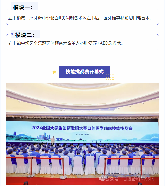 由中國信息協(xié)會、江蘇科信智能教育研究院主辦、浙江大學(xué)口腔醫(yī)學(xué)院、南京醫(yī)科大學(xué)口腔醫(yī)學(xué)院承辦的2024年全國大學(xué)生創(chuàng)新發(fā)明大賽——口腔醫(yī)學(xué)臨床技能挑戰(zhàn)賽于2024年8月1日在杭州隆重召開。日進(jìn)齒科材料(昆山)有限..