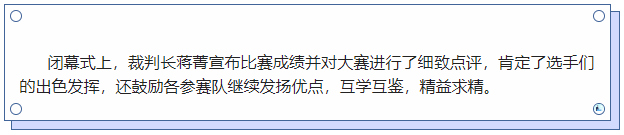 大賽執(zhí)委會(huì)及裁判工作組經(jīng)過為期2天嚴(yán)謹(jǐn)、公正地評(píng)判,最終在五個(gè)評(píng)分要素的相關(guān)使用要求下,從47支隊(duì)伍中評(píng)選出金獎(jiǎng)5名,銀獎(jiǎng)7名,銅獎(jiǎng)12名共24支獲獎(jiǎng)隊(duì)伍。