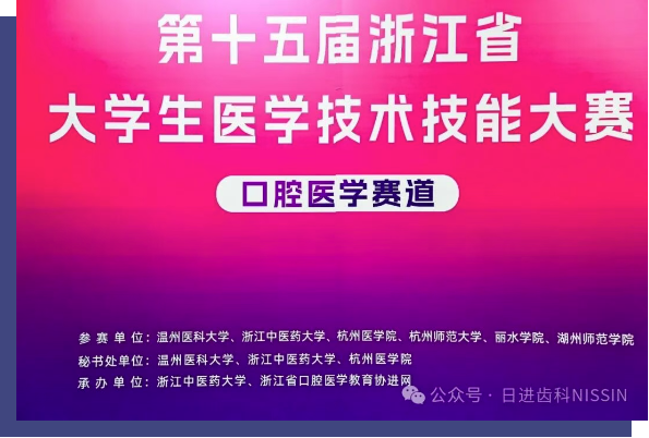 2025年浙江省大學(xué)生醫(yī)學(xué)技術(shù)技能大賽(口腔醫(yī)學(xué)專業(yè)賽道)共設(shè)置6個項目,日進齒科材料(昆山)有限公司全程為3個項目提供配套支持。