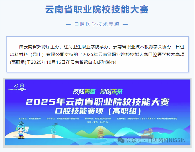 此次賽項的成功舉辦,不僅為參賽選手搭建了展示才華和成長提升的舞臺,也為各兄弟院校搭建了經(jīng)驗交流、互學(xué)互鑒的橋梁,為云南高職醫(yī)學(xué)教育高質(zhì)量發(fā)展注入新動力。NISSIN為本次大賽提供深度支持,用專業(yè)與嚴(yán)謹(jǐn)為選手..