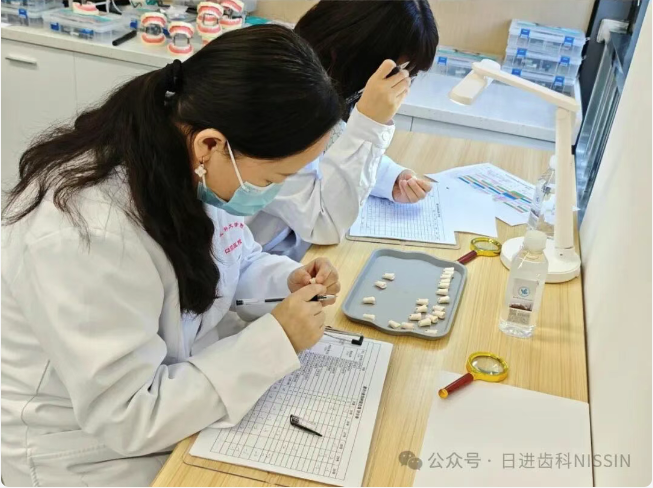 其中放大鏡上前牙金屬烤瓷全冠預(yù)備結(jié)合日進(jìn)口腔數(shù)字化教學(xué)實(shí)習(xí)評(píng)價(jià)系統(tǒng)客觀評(píng)估,確保了整個(gè)技能演練活動(dòng)的公平、公正。